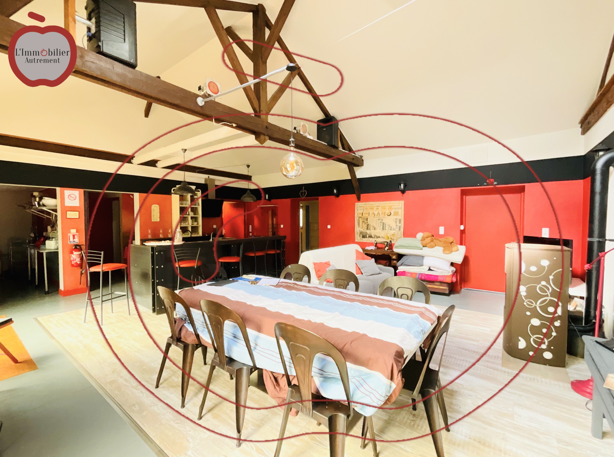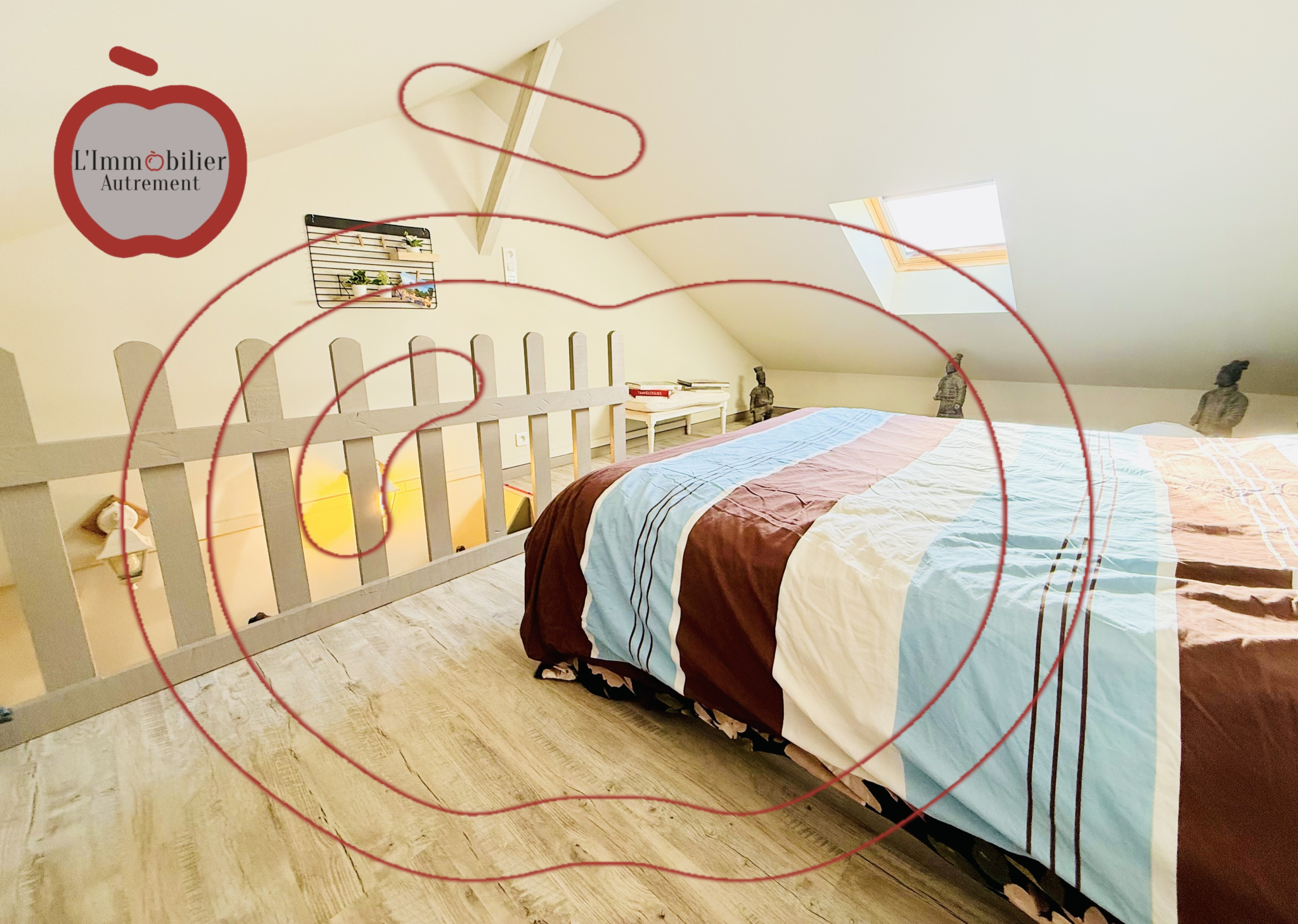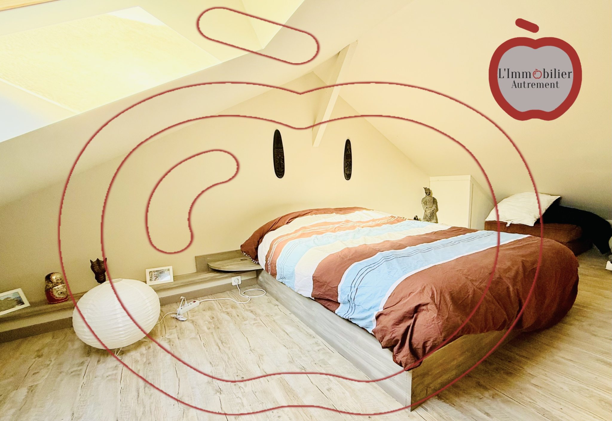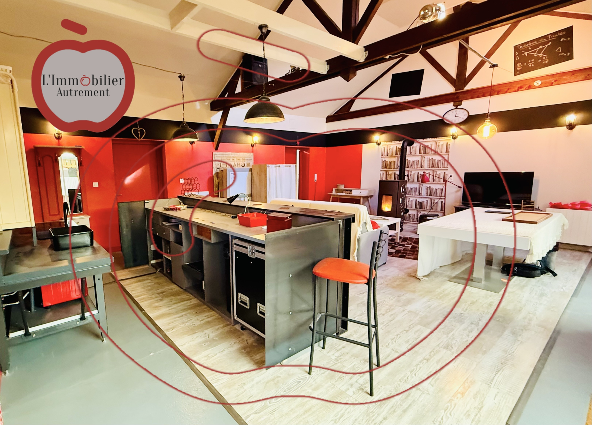 EXCLUSIVEMENT dans votre agence L'Immobilier Autrement: Aux portes de la ville, dans un environnement recherché à proximité des commodités, découvrez ce bien atypique, séduisant par ses volumes généreux et son caractère unique. La maison s’articule autour d’un superbe espace de vie de 52 m², baigné de lumière, sublimé par une belle hauteur sous plafond et une charpente apparente. Cette vaste pièce est équipée d’un poêle à granulés offrant confort et ambiance chaleureuse tout au long de l’année. Un espace cuisine indépendant est complété par une arrière-cuisine, apportant un réel confort au quotidien. Côté nuit, le bien propose, une suite parentale de 22 m², spacieuse et confortable, et une seconde chambre, en mezzanine, pleine de charme, disposant de sa salle d’eau indépendante. L’ensemble est implanté sur un terrain de 685 m², permettant de profiter pleinement des extérieurs. Une très belle terrasse couverte prolonge les espaces de vie et offre un lieu idéal pour les moments de détente ou de convivialité, quelle que soit la saison. Un bien rare, mêlant originalité, volumes et fonctionnalité, à découvrir sans tarder. Visite virtuelle disponible sur demande