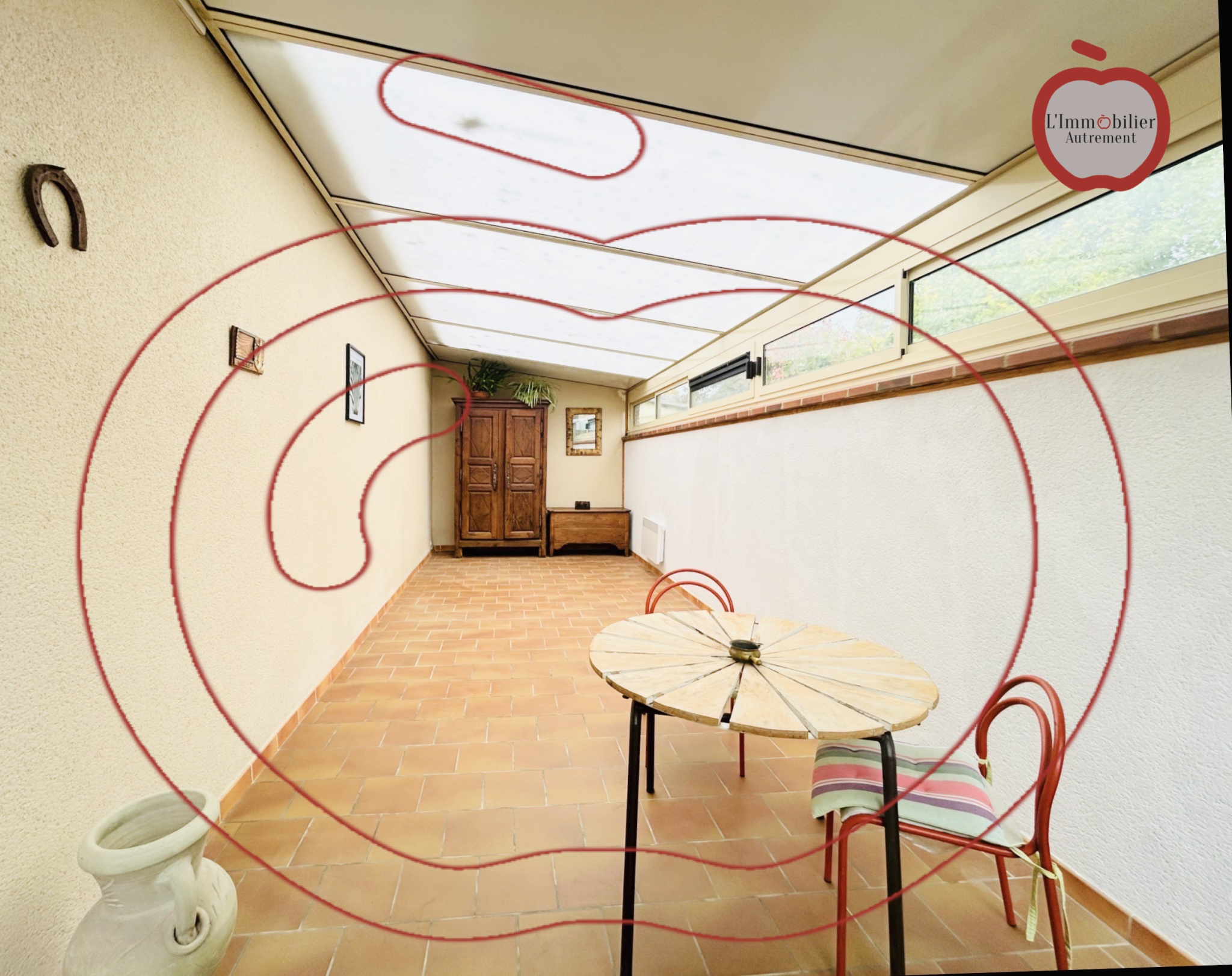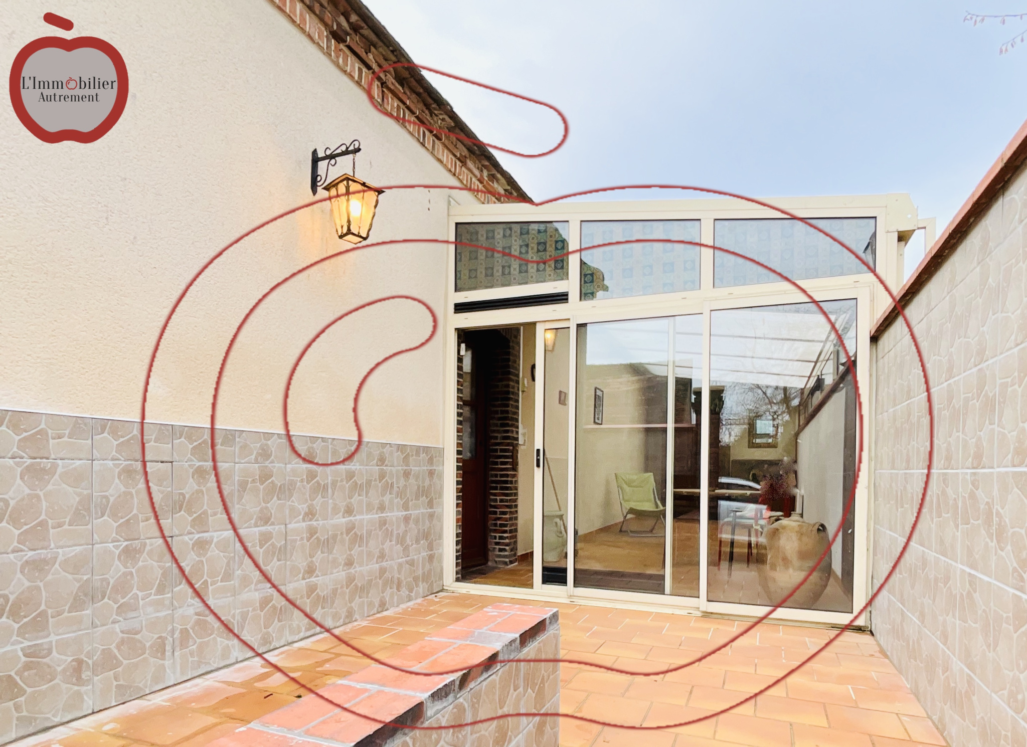 Située à La Ferté-Vidame, à 2 pas de ses commerces, venez découvrir le potentiel de cette charmante maison de bourg de 75 m². Elle se compose, au rez-de-chaussée, d’un séjour-salon chaleureux équipé d’une cheminée avec insert bois, d’un espace cuisine, d’un WC indépendant, ainsi que d’une grande véranda lumineuse donnant accès à une agréable courette. À l’étage, l’espace nuit comprend deux chambres et une salle de bain avec WC. En face de la maison (non-attenant) se trouve un terrain clos et arboré de 650 m², véritable havre de paix, disposant d’un cellier et d’un garage, et bordé par un cours d’eau, apportant charme et sérénité à l’ensemble. Des travaux de rafraîchissement sont à prévoir, laissant la possibilité de repenser les espaces selon vos envies et de valoriser pleinement le potentiel de ce bien. Une opportunité idéale pour une résidence principale, secondaire, ou pour un investissement locatif, au cœur d’un village typique du Perche, apprécié pour sa douceur de vivre et son environnement naturel préservé. À visiter sans tarder. Visite virtuelle disponible